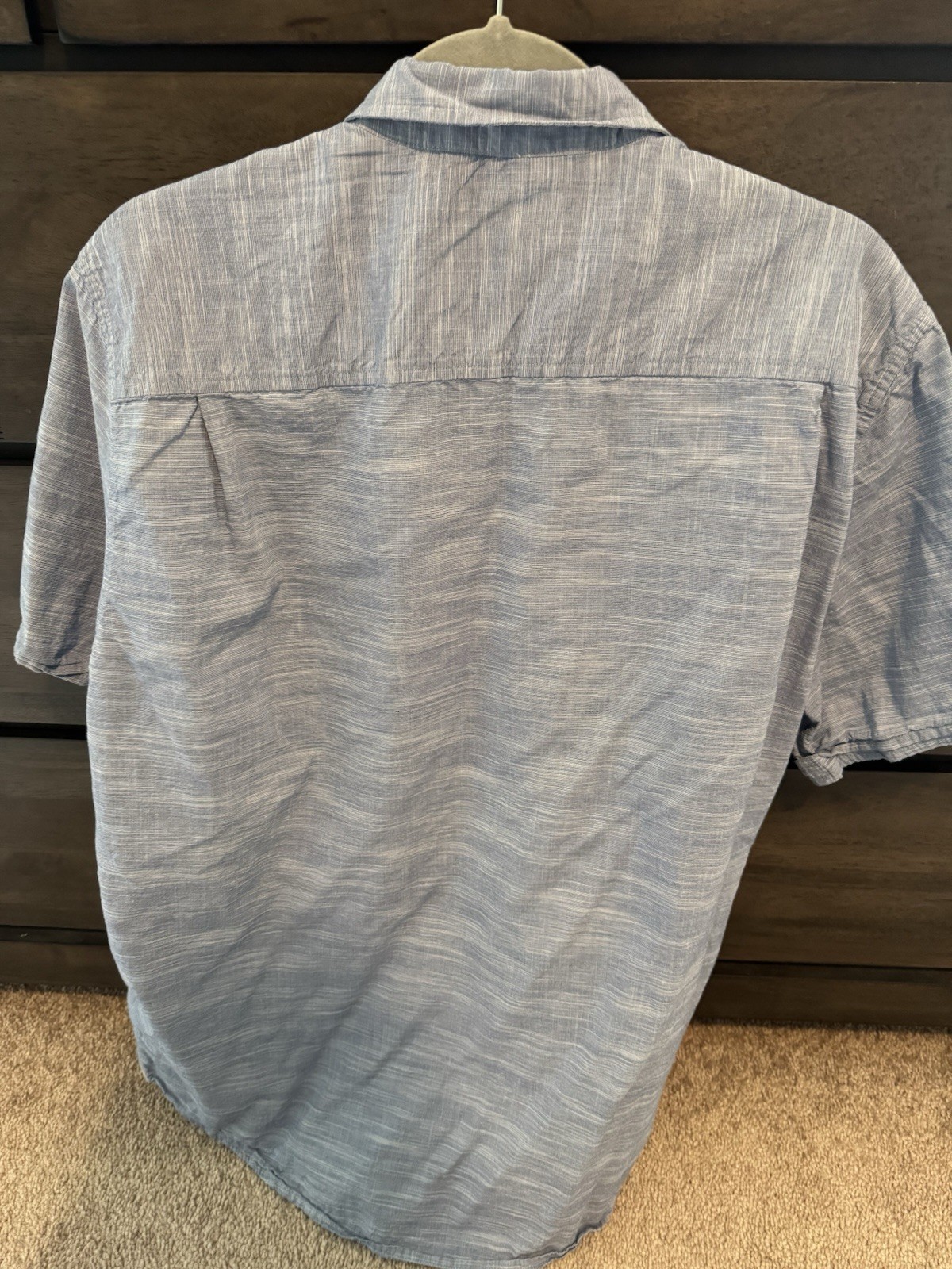 The Weatherproof Vintage Men's Blue Short Sleeve Button-Up Shirt in size XL is a classic and versatile addition to any man's wardrobe. Made of durable cotton fabric with a woven design, this shirt features a collared neckline, button closure, and short sleeves, perfect for a casual occasion. The shirt is machine washable and comes with a regular fit, making it comfortable and easy to care for. The timeless blue color and button accents add a touch of sophistication, while the pockets provide added functionality. Ideal for the summer, fall, and spring seasons, this shirt is a stylish choice for any man looking for a classic and reliable wardrobe staple.