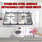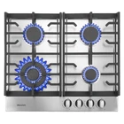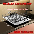 gas cooktop 【4 Powerful Cooking Burners】Weceleh 24 inch gas cooktop features 4 high efficiency sealed burners. The 4 burners include a 12,000BTU trible ring burner, two 6,000BTU semi-rapid burners and a 3,400BTU auxiliary burner. High heat energy ensures fast cooking, whether you're brewing tea, boiling water, making coffee, or cooking some everyday simple dishes, it handles them all with ease. 【2 Convertible Gas Supply & Electric Ignition Design】Weceleh dual fuel gas stove top is designed for NG and LPG. The initial setting is for natural gas and there is a conversion kit for propane. The automatic electric pulse ignition uses a 110V AC power. 2 different gas supply options and the electric ignition will bring more convenience to your life. 【Sturdy Construction & Thermocouple Protection】Weceleh 24 inch stainless steel gas stovetop has the heavy duty cast iron grate that is resistant to high temperatures and resists rusting, enhancing the beautiful appearance of the gas cooktop. If no flame is detected, the Thermocouple Flame Out Failure Detection (FFD) system will automatically shut off the gas. 【Easy to Clean and Maintain】Enjoy minimal cleanup with sealed burners to prevent food from falling into them. Modern and stylish finishes designed to perform as well as it looks. Weceleh Stainless steel Gas Cooktop is easy to clean and maintain 【Attention】 This Stainless Steel Built-in Gas Cooktop should be used in a ventilated place. Don't use this Gas Stove Top on a wood table or on a tabletop with a tablecloth. This can cause high temperature and spontaneous combustion.