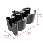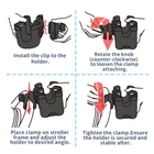 Specifications: Color: Black. Size: 8.2"*9.5"*4.1". Materials: ABS and Silicone, rubber. Package Contents: 1 3-in-1 Removable Bottle Holder. Features: Non-slip Silicone: The bottle cup holder is lined with flexible silicone to hold bottles or cups in place and prevent drinks from moving and spilling. Anti-slip Design: upgraded closed hose clamps ensure a tighter grip and optimal carrying capacity. No more worries about wobbling and instability. Suitabe for most baby carriages: The clamps of the stroller cup holder can be mounted on handlebars of different sizes at the MAXMIUM 2.1in. 3-IN-1 STROLLER CUP HOLDER: This stroller cup holder provides you with two cup holders, and the other side comes with phone organizer. You can not only carry your bottle and water bottle at the same time, but also store your cell phone. When you push your stroller, your drink and cell phone are within reach, the multifunctional design of the cup holder brings convenience to your life. TOP QUALITY MATERIALS: Our 3-in-1 Stroller Cup Holder This car back seat organizer was made of environmently ABS and silicone materials, safe and durable. WIDE COMPATIBILITY: The main cup holder of this dual cup holder has a diameter of 3.6" to accommodate larger cups or water bottles. Cup holder 2 is more suitable for baby bottles. The dual-purpose unique design is compatible with almost all cups water bottles such as coffee cups, baby bottles, Sippy cups, mini cups with handles, Coke bottles and Yeti cups. And the phone holder can compatible for most models of mobile phones with 4 inches to 7.3 inched screens. FEATURES: The cup holder liner have flexible silicone petals, it secure the cup in place to prevent the beverage from moving and spilling. What's more, The clamp designed with rubber pad, it helps lock the cup holder onto the bar without movement. WIDE APPLICATIONS: The clamps of the stroller cup holder can be mounted on handlebars of different sizes at the MAXMIUM 2.1in. Thus it can suitable for most baby carriages, pushchairs, walkers, wheelchairs, bicycles, scooters, carts, shopping carts, motorcycles, station wagons, etc.