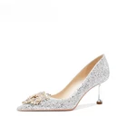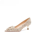 HomeWedding Dress Wedding Shoes Women Engagement Gold Crystal Heels Wedding