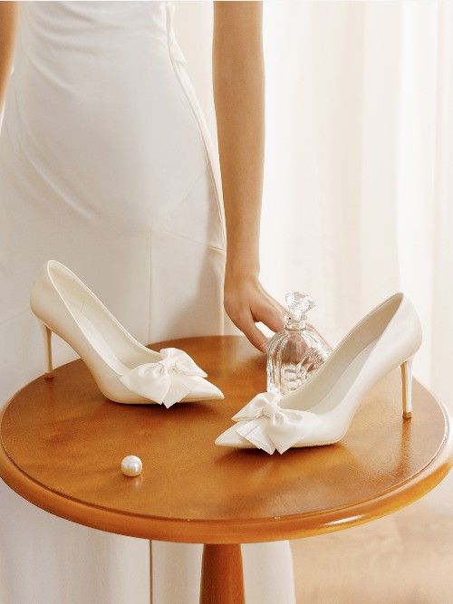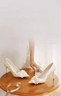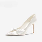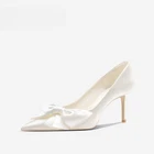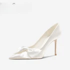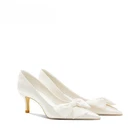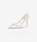Wedding Shoes Women's White High Heels Bow Bride Single Shoes