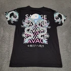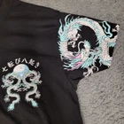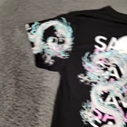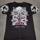 Dragon-themed black tee made by Weekend Warrior. Features intricate dragon designs on sleeves and back. Comfortable polyester/cotton blend. • Dragon designs on sleeves and back • Polyester/Cotton blend • Black color • Short sleeves • Machine washable Shoulder to bottom hem = 27 inches