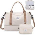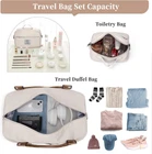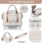 Weekender Bags for Women,Personal Item Travel Bag with Large, Beige & Brown Product Details Airplane Friendly Carry-On Bag: This weekender bag for women size is 18.50×14.56×8.13 inches and conform most international carry-on baggage requirements. And it can as personal item bag be stowed in overhead compartments, under the seat during the flight Shoe Compartment & Toiletry Bag: The travel bags for women has a separate compartment at the bottom for shoes and dirty laundry. And equipped with a toiletry bag, size: 9.4×3× 6.12 inches Wet Pocket & Trolley Sleeve: This duffel bag offers a zippered waterproof PVC lined pocket for wet clothes or towels and swimsuits. The built-in trolley sleeve slides on the trolley baggage handle, saving effort and making it easy to move Large Capacity Multiple Pockets: The overnight bag offers a spacious interior for carrying all your travel essentials for 3-11 days trip. The travel bag for features 9 pockets that help you pack more efficiently while keeping your essentials organized Multi-Functional Weekend Bag: Perfect for daily use,gym,travel, overnight stay, or a carry-on. Suitable for travel bag, carry on bag,overnight bag,duffel bag, weekender bag,personal item bag,gym sports bags