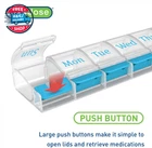 7 DAY PILL ORGANIZER: AM/PM compartments help you to easily plan and distribute your daily doses EASY USE: Push buttons and rounded bottoms, Makes pill organizer easy to open and medication easy to retrieve PILL CAPACITY: Holds up to 30 pills per compartment (aspirin-sized) BUILT TO LAST: Quality design, Built to withstand repeated use HEALTHY LIVING: Ezy Dose products make living healthier simply easier, many products Arthritis Foundation Certified Ezy Dose XL push button Weekly Pill Planner - 7-Day pill reminder - This Weekly Pill Organizer is great for planning your week's vitamin Planner and medication. Its push buttons and transparent lid are simple To use and help you keep track of your medication through the Week. This 7-Day pill Planner is designed for easy use. Its buttons and rounded bottom make it easy to open and retrieve medications. The product's clear lid allows easy visibility of medication to help prevent missing doses. The main features of the 7-Day push button pill Planner include: Easy use - push buttons and rounded bottoms make the planner easy to open and medication easy to retrieve, clear lid - allows easy visibility of medications to help prevent any missed doses, large compartments - the planner can fit 60 aspirin tablets and has plenty of room for all of your daily medications. Product Recommended by the and is great for anyone with dexterity problems! About Ezy Dose: Ezy Dose is the leader in easy-to-use medication management products. Ezy Dose products make living healthier simply easier with products like pill cutters, pill crushers and a full line of easy-fill planners. Non-slip base - four silicone feet secure the planner to the counter for one-handed opening.