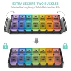 Color:Rainbow Black Weekly AM PM 2 Times a Day Organizer 7 Day A great helper for your business trip/leisure trip/daily life. EASY & QUICK FILL Simply remove detachable base and easily fill all 14 compartments of dosage into the organizer within minutes. EXTRA SECURE side EXTRA secure locks, keep your & supplements safe. HARD & COMPACT DETACHABLE BASE Effectively avoid from moving cross compartments, fall out,and keep content away from bacteria. EXTRA LARGE CAPACITY Each compartment can hold up to 13 fish oils / 12 vitamins. Multi-Purpose It can be used for storing other items besides & , such as small jewelry or personal accessesories. Specification Material: Top quality BPA-Free & food-PP Product Size: 8.4" L x 3.7" W x 1.2" H Compartment size: 1.6" L x 1.1" W x 1" H Easy & Quick Fill: Simply remove detachable base and easily fill all 14 days in minutes 7 day AM PM Case: Clear AM PM & weekday marks help you easily manage Large Compartments: Large compartments that can fill up to 10 fish oil Double Side Buckles: Extra secure buckle design on both sides to keep every safe Spill Proof design: You can be sure all your stays where they belong