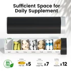 This is our new 7-day box, modern and stylish, tailor-made for those who need to carry their medicines with them and forget to take them, making taking medicines more enjoyable and easier 【Easy-to-Use Medicine Organizer】 Our compact weekly organizer features seven compartments and an ergonomic, soft-touch design, making it perfect for travel and effortless for seniors or those with arthritis! 【7-Day Organizer】 Our weekly box holds up to 5 large supplements or 10-12 oval vitamins in each compartment. Stay organized and prepared for a week of with ease and convenience! 【Safe Travel Holder】 Our secure travel case keeps your medications safe from spills with slide locks that won’t pop open. Compact and BPA-free, it fits easily in your purse or bag for worry-free travel! 【Stylish & Easy to Carry】 With a sleek design and compact size of 6.5 x 1.69 x 1.06 inches, our box fits effortlessly in your purse or pocket. Perfect for travel—carry your meds in style and convenience! 【Innovative 3D Labels】 Our organizer features cutting-edge 3D printing technology, ensuring each date label lasts over 10,000 uses. Effortlessly track your daily intake from Sunday to Saturday!