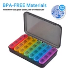 Weekly Pill Organizer(4 Times a day) 28 Grids multifunctional medicine holder Meet your all needs ∗ Lock compartment ∗ Easy to open ∗ Meet the needs of one week ∗ Sealed and Moisture-proof ∗ Rainbow color 28 Grids ∗ Buckle Design Food-Grade PP Materials It is plastic that can be directly contacted with food. It has been certified by SGS and can be used safely. UV Printing increase product brightness and not easy to scratch. Product weight: 240 Grams Product Size: 8.03*5.04*1.42 inches One compartment size: 4.69*0.94*1.14 inches One compartment can be contained: 8 pills or 6 fish oills or 12 capsules Weekly Pill Organizer(4 Times a day) 28 Grids multifunctional medicine holder Food-Grade PP Materials It is plastic that can be directly contacted with food. It has been certified by SGS and can be used safely. UV Printing increase product brightness and not easy to scratch. Product weight: 240 Grams Product Size: 8.03*5.04*1.42 inches One compartment size: 4.69*0.94*1.14 inches One compartment can be contained: 8 pills or 6 fish oills or 12 capsules Questions? How to use the pill organizer? The Weekly Pill Organizer is convenient for your medicine storage.You can store and take your pills or vitamins in the compartment daily. Where is the item from? How long can I get the parcel? All items are shipped from CA and most of the parcel will be shipped via USPS. It will take 2-6 business days for delivery ordinarily after payment. Have a problem with your order and item? Please go to order details and find “Contact seller”. You can send us a message and ask. Please don’t open return or refund request. All issues will be solved in 24 hours from Monday to Friday. We maintain high standards of satisfaction and will work with you. Your positive Feedback is very important for us. Please don’t hesitate to contact us if you have any problem. On Dec 12, 2024 at 18:08:33 PST, seller added the following information: