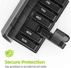 Super Easy to Fill: AUVON am pm pill organizer 7 day are designed to open on the same side and the lid stays open at 180°, so it is easier and more efficient to fill and retrieve your pills. Super Large: Upgraded to a larger capacity, each pill container can hold 8 fish oils or 16 capsules for your weekly needs. Overall size: 6.14" x 3.74" x 1.90", Individual size: 3.14" x 1.72'' x 0.78''. Super Quality: The shell and inner hinges are reinforced for 10,000 uses. The medication organizer letters were UV printed, which is long-lasting over 10,000 uses, never worry about the rub-off labels. Super Portable: Each day of the pill holder can fit in any of your wallet or pockets, and the whole morning and night pill boxes with a black case can protect your medication privacy while holding a week's pills for your travel. Super Safe: Made of BPA-free materials that are harmless to humans, you can safely store your daily pills in this daily vitamin organizer!