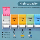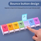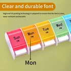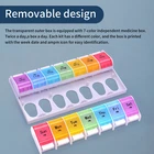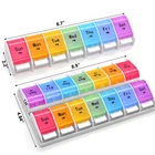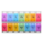 Weekly Pill Organizer(Twice a day) A new generation of multifunctional medicine holder,more convenient to use. Meet your all needs √ Rainbow color compartment √ Clear appearance Design √ Easy to open √ High Capacity √ Meet the needs of one week √ Removable Design Safe and Food-Grade Material PP It is plastic that can be directly contacted with food. It has been certified by SGS and can be used safely. UV Printing increase product brightness and not easy to scratch. Product weight: 206 Grams Product Size: 8.9 x 4.84 x 1.34 inches One compartment size: 1.22 x 1.14 x 1.14 inches One compartment can be contained: 13 pills or 9 fish oils or 11 capsules