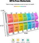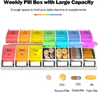 Product Description Why do we need an am pm pill organizer? Do you often forget to take medicine? Do you spend a lot of time preparing pills every day? Do you often take a lot of medicines and often get confused because there are too many bottles? Is your medicine too big to fit all medicines in your medicine box? Using this am pm pill box can help you get rid of these troubles Our weekly pill organizer 2 times a day will help you easily keep tracking of your pills and keep your pills in place. The easier way to remind you to take the right medicine and the right dosage. Sort by date and help you plan a whole week in advance, prevent you from forgetting to take medicine that day. Enough space to organize your 7 day's multiple supplements and pills. LARGE CAPACITY PILL BOX 7 day am pm pill case with large compartments is easy to load and fit all sizes of pills. It's able for you to fill 8 fish oils or 22 vitamins or 15 #00 capsules in each compartment. Separated weekly am pm compartments are easier for you to plan your am/ pm medications for a whole week in advance. EASY TO OPEN PILL DISPENSER The covers will keep closed once snapped. you don't need to worry about it will pop open accidentally. Our day and night 7 day medicine organizer adopts an easy-to-open design so that it can be easily opened even for elderly or arthritis patients SEPARABLE AM PM COMPARTMENT The am pm pill box can be removed from the tray. So with the weekly medicine organizer, you can grab this weekly am pm pill container that you need for the week and drop it in your purse or back pocket and never worry about forgetting your pills again! BPA-FREE The am pm pill box is made of BPA-Free material, safe for use. ADVANCED 3D PRINTING TECHNOLOGY Weekly pill boxes and organizers featured with see-through covers and bold date labels, The labels are printed with upgraded 3D technology. Compared with other am pm pill organizers, our weekly pill box are more durable, the date label is not easily wiped off after washing and rubbing PRODUCT SIZE The overall size of pill case: 8.9 x 4.5 x 1.1inch Individual compartment size: 1.3x1.2x0.8 inch
