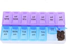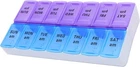 Weekly Pill Box Organizer Twice a Day 7 day AM PM Keep your important medications organized 14 easy-to-open compartments Lids of each compartment are imprinted with AM and PM Provides 1 full week of medication organization Translucent plastic lids allow for pill visibility Lids remain open while you fill your daily medications Shaped corners allow for easy removal of the pills Made from high-grade plastic As with all medication storage devices, keep out of reach of children 7.16'' x 3.62'' x 1.26 SHIPPING: Ship within 24 Hours Usually Monday to Friday