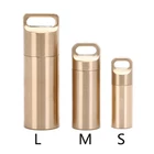 Item Description: - HIGH QUALITY: Titanium alloy convenient waterproof receiving box. -HIGH SEALING:Using solid titanium alloy material, CNC technology, high strength, never rust, waterproof. - EASY CARRY: A variety of specifications, with a key hole, can be used with a key chain, can also be worn as a pendant, easy to carry. - WATERPROOF WITH AIRTIGHT SEALING: Food grade silicone O-ring ensures your pills stay protected, even in water. Sealed and waterproof, sealing ring + thread design, moisture-proof and waterproof. - MULTI-USAGE: Suitable for hiking, fishing, camping, hunting, outdoor, daily use or as emergency gear. Enough capacity to meet your daily need. This product can be used packaging storage, such as first aid supplies, liquid, pills, or powder. Package: 1PC Case