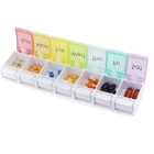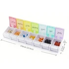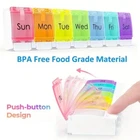 This listing is for 1PC of Weekly 7 Day Push Button Pill Case Organizer Comes with 7 Pockets/Subdivisions with "Marked Day of the Week" in Bright color for easy recognition Push Button Design for ease of opening Measures approximately 8.8" × 2.1" × 1" Material: Polyethylene (Safe and Food Grade PP)