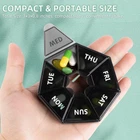 Compact & 6 Colors: Perfct size for travel,easy to take with and won't pop open Easy To Use:Easy to open even with arthritis,the pill case will stay closed once locked and securely snap will keep your pills safe Conspicuous Printing:Bigger printing of days of the week makes it easier for you to distinguish,let the pill dispenser organizer remember the time for you instead of by yourself,and improved printing stand usage of 10 years Bpa Free: Food grade material,safe to keep your daily medication What You Receive: 2 x Gelibo 7-sided black pill boxes,our 12-month warranty, and friendly customer service Product Description