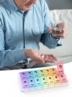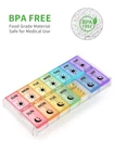 Weekly AM PM 2 Times a Day Pill Organizer 7 Day A great helper for your business trip/leisure trip/daily life. EASY & QUICK FILL Simply remove detachable base and easily fill all 14 compartments of dosage into the pill organizer within minutes. EXTRA SECURE Two side EXTRA secure locks, keep your pills & supplements out of dust. HARD & COMPACT DETACHABLE BASE Effectively avoid pills from moving cross compartments, fall out Multi-Purpose It can be used for storing other items besides medication & supplement, such as small jewelry or personal accessories. Specification Material: Top quality BPA-Free & food-grade PP Product Size: 9.4" L x 4.7" W x 1.1" H User Groups - Seniors - Caregivers - Health Geek - Athletes Warning 1. Wash prior to first use. 2. Dry before storing. 3. Keep out of reach of children 4. Best keep the product away from high temperature & humid environments. LARGE CAPACITY – This weekly pill organizer includes 14 large pill compartments that can hold up to 13 fish oils or 12 vitamins in each compartment. EASY & QUICK FILL:Simply remove detachable base and easily fill all 14 compartments within minutes. EXTRA SECURE:Two side buckle locks, keep your pills & supplements safe. HARD & COMPACT DETACHABLE BASE :Effectively avoid pill, supplement, vitamin moving cross compartments BPA FREE - Weekly AM PM Pill Box is made of high quality food grade plastic, safe for medical use. If you need other color, please click "Visit the Store", thank you