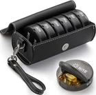 Weekly Pill Organizer 2 Times a Day Large Box with PU Leather Case About this item: EXCELLENT DESIGN: The daily pill box organizer is removable and includes 7 large compartments, the size of which is as large as the palm of your hand.Each box can hold 6 Fish Oils or 14 pills. PU LEATHER CASE: The PU leather pill organizer case with bag keeps pills from spoiling and provides extra privacy.The unique hand strap design makes it easy to carry along with when being on a business trip or traveling. ONE DAY ONE BOX: Each cover was printed with week date and AM/PM icons to avoid mixing up, self-contained and can be carried around. PREMIUM PRINTING: Upgraded UV printing technology and humanized date sequence,ensure the labels can last for a long time. BPA FREE & DURABLE: The 7 day pill organizer with zipper is made of food-grade PP plastic and safe for medical use.