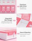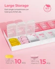Large Capacity: This AM PM medicine organizer is designed with ample space for various supplements. Each compartment can hold up to 10 fish oils (1.0" in length each) or 15 large vitamins (0.8" in length each) to meet your health needs easily. Size of the whole pill box: 9.0" x 4.2" x 0.9", each compartment: 1.2" x 1.8" x 0.8" AM PM Pill Tracking: This stylish weekly medication organizer in pink and white helps simplify your medication routine. The pretty pill holder allows you to monitor your AM and PM doses at a glance Easy-open Lids: The pill dispenser adopts ergonomic and enlarged lids to fit the curvature of fingers, which makes it easy to dispense pills effortlessly. Hassle-free to fill and retrieve your daily medications with this vitamin organizer Superior Quality: Featuring enhanced hinges, long-lasting and clear 3D labels, this BPA-free pill box organizer can withstand more than 10,000 times of use. Elegance meets functionality in the medicine pill organizer Why You Choose : We provide a 30-day return and replacement service. If you have any problems with this pill organizer, please contact us, and the customer service team will always be here to solve your concerns