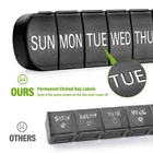 Large Pill Organizer 1 Time a Day, Weekly Pill Box for Travel Vitamin Organizer Big Compartments, Daily Pill Holder 7 Day AM/PM XL Medicine Dispenser for Fish Oil Case 💊LARGE CAPACITY: medicine organizer box comes with big size compartment to meet your daily large pill organiser request. Each compartment (Overall size: 8.7"x2.17"x0.8"/Each slot size:1.8"x 1.2"x 0.7") can hold 36pcs small pills or 20pcs capsules or 10pcs calcium. 💊PERMANENT ETCHED DAY LABELS: Mold LOGO design within a unibody product so that the week engraved on the lid does not wear off. The pill holder 7 day is light protected and also helps keep pills' privacy. 💊WEEKLY PILL ORGANIZER 1 TIME A DAY: Weekly pill box can store the amount of medicine for one week. Plan and remind you of your AM & PM medication. Portable pill case is made of 100% food grade BPA-free materials, safe for medical use. 💊UPGRADED EASY OPEN DESIGN: The snap-shut lids always stay closed tightly, would never pop up even when dropped. But ingenious design with protruding edge of the lids makes the pillbox easy to open, no problem for the elderly or arthritis. 💊EASY TO CARRY: The travel pill container is compact in design and does not take up much space. Each day has a separate extra large pill box, when you go out, business or travel, you can carry a few days of the xl medication organizer storage, put them into the handbag, suitcase, pocket or purse which is very convenient.