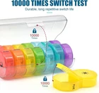 【Safe & Durable】The daily Pill sorter is made of food grade BPA-Free materials, which is non-toxic and non-harmful, Sturdy and durable, whether the silk print or hinges can be reused more than 10, 000 times. 【7-Day Pill Dispenser】The pill holder consists of 7 different color compact pill container with Each box was printed with week date and AM/PM lables avoid mixing up, make managing your weekly morning night prescription medicine simple. 【Portable Design & Large Capacity】Pocket-sized with individual carry, Each internal compartment can storage 8 fish oils or 12 large vitamins, Enough space for filling and sorting all your pills for the entire week, Each Compartment Size:3.15"x 1.77"x 0.69" 【Say No to Dumpage of Pills】The snap-shut lids always stay closed tightly, would never pop up even when dropped. But it’s easy to open, which is friendly to people with elderly, kids or arthritis. 【What You Get】1 x Travel Medicine boxes, Small and portable size, Whether working or traveling, it can be effectively to help keep tracking and reminding you to maintain day and night medication regimen. Product Description Why Choose Our Pill Case ? HEALTHY LIVING- Large AM/PM Weekly Pill Organizer 2 Times a Day Makes Medicine Taking Easier. - Healthy & Safe: BPA-free and keep your medicines safe. - Easy to use & Portable: Small in Size, enough space to hold your pills, suitable for travel. - Easy to Open But Stay Closed: Easy operation, friendly for the old Man. - Built to Last: Adopts high-end silk printing technology,ensure the labels can last for a long time. - Large Capacity: Large storage, meets your daily medication needs. Portable Pill Case Material: Food Grade BPA-Free Plastic Product Size:5.31 x 3.54 x 1.97 inch Each Compartment Size: 3.15 x 1.77 x 0.69 inch Color: Clear Colorful Package Content: 1 x Travel Daily Medicine boxes Safe & Portable Our daily pill box is made of food-grade BPA-Free materials, non-toxic and non-harmful. Large Capacity But Suitable For Carrying Pill Case, Suitable size for your bag, travel friendly. Simple To Open And Close Extra Large Capacity, Ingenious design with protruding edge of the lids makes the pillbox easy to open, no problem for the elderly, kids or arthritis. Built To Last Adopts high-end silk printing technology let the labels can last for a long time. The lids stay closed all the time and will never pop open by itself, Say No to Dumpage of Pills. Twice-A-Day AM/PM Pill Organizer AM/PM split pill compartments make planning daily doses easy. Colored transparent lids and morning/night and day icons help you quickly identify your vitamins, supplements, and medication. Try our pill organizer today and get your pills in order! User Groups Elderly People / Forgetful People / Multiple-medications-taken People / People not taking medicine properly and regularly Caution: Softly clean with cold water before your first usage. Do not wash with a dishwasher. Keep out of reach of little children and pets. Keep the pill separator away from high temperatures and humid environments. Add to Cart Add to Cart Add to Cart Add to Cart Customer Reviews — 4.7 out of 5 stars 3,732 4.7 out of 5 stars 3,732 4.7 out of 5 stars 644 4.7 out of 5 stars 644 Price — $5.99 $ 5 . 99 $4.99 $ 4 . 99 $5.69 $ 5 . 69 $6.99 $ 6 . 99 BPA FREE ✓ ✓ ✓ ✓ ✓ Dosing frequency 2 Times a Day 2 Times a Day 2 Times a Day 2 Times a Day 2 Times a Day Number of Compartments 14 14 14 14 14 Color Black & White Black & Khaki Black & White Clear Colorful Black Colorful