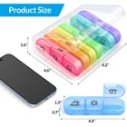 Manage Pills with Ease: This pill box 3 times a day features a rainbow-colored design that allows you to easily manage your pill intake 3 times a day. With only once pill filling per week, weekly pill organizer can be your good helper to track your supplements and take doses on schedule. Dual Secure: The case of the daily pill box organizer is made of sturdy ABS material to protect your medication safely. The buckles of the pill box 7 day securely prevent accidental pill spillage. Start your worry-free and healthy travel! Ideal for Carrying: 7 individual medication organizers is in compact design for single or multi-day pills needs when travel or on long trips. Each compartment of the large pill organizer can store up to 8 fish oils or 14 capsules. Still manage your health no matter where you go. Never Rubber Off: Upgraded silk print on this vitamin organizer can stand up to 10,000 times of use, even lasting up to 10 years without fading or falling off. Get assured to choose premium 7 day pill organizer. BPA-Free: The supplement organizer is made of BPA-free material, which is harmless to the human body and protects your health. You can store all pills or vitamins you need daily in this weekly pill organizer 3 times a day to manage your health better!