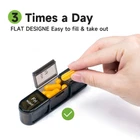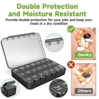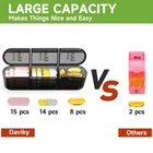 Carry More but Portable - Overall 8''x 5''x 1.4'' and 4.8" x 1.2" x 1'' for each compartment. Our pill organizer is with plenty of room for your pills and very portable while traveling. You can take the individual day packs out for portability on the go. This weekly pill organizer has made traveling so easy Pill Organizer 3 Times a Day - From morning to evening, our pill box 3 times a day considering any moment you take medicine. You can organize your pills and vitamin only once a week with our pill case Excellent Printing Pill Container - Bold letter marks on the 7 day pill organiser will remind you what to take by the day. The printing of the pill dispenser has passed the critical 3M adhesives & tapes test, and won't rub off after over 5000 times of use Easy Open Pills Organiser - With easy open design, the elderly or patients can also open the pill box 7 day Double Protection Design - Premium solid ABS outer container and high-quality large pill organizer provide double protection for your pills. Don't need to worry about pills spilling in your bag or suitcase anymore, pill box 3 times a day closes tightly all the time