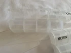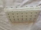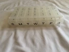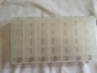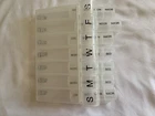 Weekly Pill Organizer 4 times a day 7 Days a Week Pill Box Holder Daily Medicine Arthritis Open. Medicines and pill container. Individual containers that spring out for east access when opened. Removable dividers. Has braille on the days of the week letters