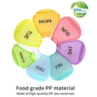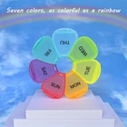 Seven-Grid Petal Pill Organizer Our Pill Organizer is like petals, shaped like petals, plus colorful, like rainbow colors, very cool, just seven grids, very suitable for a week of use, long-distance travel without any problem, so you can take fresh pills every day. Buckle design The snap of Our Pill Organizer is designed on the outside, which is very convenient to open and clean. It is very user-friendly, and each petal has an independent switch, which does not interfere with each other and protects the pills well. No need to remember The surface of the Pill Organizer is marked with the time of the week, and you can place the corresponding pills according to your own needs. Rainbow color: Each grid has its own unique color, like a rainbow effect, which can meet the daily use, and you are not afraid to forget, the surface of the Pill Organizer has eye-catching marks, which are very clearly marked for every day's use, never again. Don't worry about forgetting to use it, especially suitable for the elderly, children, etc. Round Pill Organizer: Our Pill Organizer is shaped like a circle, small in size and light in weight, it is very suitable for people who travel long distances, it can be put in purses, small bags, even pockets, pockets, and of course, you can also place your Small accessories such as earrings, studs, etc. Well-made: Our Pill Organizer is made of high-grade plastic, and according to ergonomic design, it is especially fashionable and trendy, which has changed the appearance of the past, feels comfortable, beautiful in appearance, safe and efficient. Large Capacity: Our Pill Organizer is 4.7 inches in diameter. There are 7 compartments with different colors. Each compartment can hold about 10-15 pills, which is very suitable for traveling friends! High-quality service: Our service is endless, we adhere to the concept of product quality first, and are committed to providing the best service and quality to consumers, if you have any questions about the product, you can send email us, We will try to answer any questions for you.