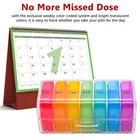 Weekly Pill Organizer(Twice a day) Product weight: 212 Grams Product Size:5.8*2.7*2.4 inches One unit size:2.4*2.4*0.67 inches One compartment can be contained: 20 pills or 10 fish oils or 17 capsules Meet your all needs ∗ Rainbow color compartment ∗ Easy to open ∗ Meet the needs of one week ∗ Easy for traveling and carrying ∗ Traditional buckle type ∗ Snap-in Design Weekly Pill Organizer(Twice a day) Travel size multifunctional medicine holder Meet your all needs ∗ Rainbow color compartment ∗ Easy to open ∗ Meet the needs of one week ∗ Easy for traveling and carrying ∗ Traditional buckle type ∗ Snap-in Design Food-Grade PP Materials It is plastic that can be directly contacted with food. It has been certified by SGS and can be used safely. UV Printing increase product brightness and not easy to scratch. Product weight: 212 Grams Product Size:5.8*2.7*2.4 inches One unit size:2.4*2.4*0.67 inches One compartment can be contained: 20 pills or 10 fish oils or 17 capsules Payment Delivery details Terms of sales About us Contact us Payment *Your PayPal account must be a Verified PayPal Account. *Please double check your shipping address when you make payment. Delivery details *Please provide a physical mailing address. *All items will be shipped from USA. *We ship in 1-2 business days after payment is confirmed, excluding weekends and holidays. Terms of sales *Please contact us through eBay message center before returning any item. We are not responsible for wrong item ordered. *Please contact us within 30 days upon receipt if the item can't work properly or broken. *Please ship the item back in its original package. Please make sure the item returned was purchased from us. There is a product inspection upon receiving. *Buyer is responsible for the return shipping fee with the wrong item ordered. About us Provide high quality products you need. Our warehouse is in South EL MONTE, CA. Contact us *Please contact us via "Ask a question" or texting our email by ebay email systems for any question or concern. *The 5 star positive feedback we appreciated. Please feel free to contact us before you leave Negative Feedback.We will fix the problem for you immediately.
