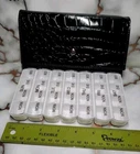 Weekly Pill Organizer Black Croc Embossed Wallet- Daily 4 Times A Day Pill Case. Very clean wallet. Normal wear and tear. No rips, no cracks on cases. Very discreet.
