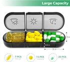 Brand Unbranded Package Information Box Color Black Material Acrylonitrile Butadiene Styrene Special Feature Easy Open Large Capacity: The daily pill box organizer has a large space, allowing you to fill and sort weekly pills in advance, and you can easily track and maintain the medication plan through it. Each large pill organizer can accommodate 7 fish oils and 20 capsules.(Size of each compartment: 1.5"x1.3"x0.6", overall size: 6.2"x 4.6"x1.6") Durable and BPA-free Pill Box: This premium pill containers is equipped with high-quality solid-state ABS external holders and high-quality food-grade PP daily pill box organizer. Made of BPA-free food-grade materials, it is environmentally friendly and practical to ensure your pills are safe to eat. Say No to Dumpage: Each 7 day pill organizer has 3 separate cases, and the smooth surface won’t have residues, thus your pills won’t mixed with the previous residues, and also it is easy to clean. The double protection design makes the lids of the pill box 3 times a day always stay closed, never pops up. Permanent Date Reminder: After using it for a period of time, don't worry about the letters on the lid fading, our upgraded printing of medication organizer can be used up to 10,000 times. Track Your Medication: Pill container (morning, noon and night) sort your pills 3 times a day; larger black shell can accommodate 7 independent pill box organizer to plan the pills for a week. Separate pill holder, this pill dispenser has 7 movable vitamin organizers, which can be taken out separately every day for your on the go use.