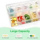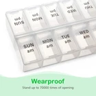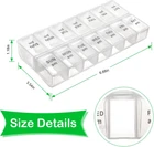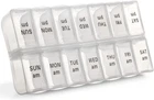 7 Day Weekly Pill Organizer,Large AM PM Pill Case 2 Times a Day,Day Night Pill Box Twice a Day, Daily Medicine Organizer for Vitamin, Pill Container Holder (White) Package Information Box Color White Material Polypropylene, Acrylonitrile Butadiene Styrene Special Feature Portable About this item 【Safe and Health】: The combined design of premium solid ABS outer container and high-quality food-grade PP pillboxes which secure your pills and keep your meds safe. 【Large Capacity】: 14 compartments for 7 day and 2 times a day, Comparrtment size: 1.57'' x 0.94'' x 1.18'', each compartment able to contain up to 15 Large capsules" 【Easy to Open and Close】 This pill organizer,the snap-shut lids always stay closed tightly, would never pop up even when dropped." 【Twice a Day Medication Planner】: 14 compartments with 2 different colors and week day labels, make managing your weekly prescription medicine simple." 【Portable Size for Traveling】 The size of this Travel Pill Box Organizer is 6.89 x 3.35 x 1.18 inches. It’s very suitable to take this pill container for trip or going out."