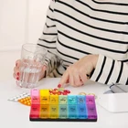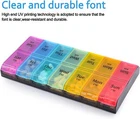 Weekly Pill Organizer(Twice a day) Big size multifunctional medicine holder Meet your all needs ∗ Rainbow color compartment ∗ Easy to open ∗ Meet the needs of one week ∗ Sealed and Moisture-proof ∗ High Capacity ∗ Snap-in Design Food-Grade PP Materials It is plastic that can be directly contacted with food. It has been certified by SGS and can be used safely. UV Printing increase product brightness and not easy to scratch. Product weight: 176 Grams Product Size: 9.49*4.69*1.1 inches One compartment size: 2.13*1.26*0.98 inches One compartment can be contained: 30 pills or 10 fish oills or 20 capsules Questions? How to use the pill organizer? The Weekly Pill Organizer is convenient for your medicine storage.You can store and take your pills or vitamins in the compartment daily. Where is the item from? How long can I get the parcel? All items are shipped from CA and most of the parcel will be shipped via USPS. It will take 2-6 business days for delivery ordinarily after payment. Have a problem with your order and item? Please go to order details and find “ Contact seller ”. You can send us a message and ask. Please don’t open return or refund request. All issues will be solved in 24 hours from Monday to Friday. We maintain high standards of satisfaction and will work with you. Your positive Feedback is very important for us. Please don’t hesitate to contact us if you have any problem.