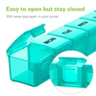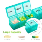 Large Pill Organizer - With the extra large capacity, this travel medicine organizer can hold up to 12 fish oils or 13 large vitamins. The pill container is roomy enough for all your supplements or medications Perfect for Travel - This oversize of the weekly pill organizer is 9.1'' L x 1.3'' W x 1.1'' H and has 7 individual compartments. Just toss this travel pill organizer with your entire week's worth of supplements into your bag, and you're good to go! User-Friendly Medication Organizer - The snap-shut lids of this pill holder stay closed tightly, would never pop up accidentally. Meanwhile the pill box 7 day is easy to open, really friendly to people with elderly, kids or arthritis Easy-to-Read Pill Case - The uppercase bold and wear-resistant day labels on the pill cases organizers 7 day make distinguishing the days of the week effortless. pills organizer is made of food grade BPA-Free material, safe for medical use. Exceptional Durability - This daily pill organizer travel boasts a sturdy 1.6mm thickness, making you can rely on it for over 5 years. And reinforced hinges of this travel size containers support over 10,000 bends.