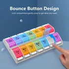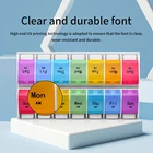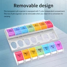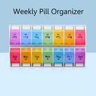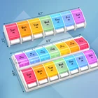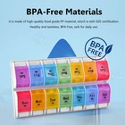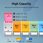 Weekly Pill Organizer Twice a day AMPM Food Grade PP material,BPA-free Product Size: 8.9*4.84*1.34 inches One Compartment Size : 1.22*1.14*1.14 inches Product Weight: 206 Grams One compartment can be contained 13 pills , 9 fish oils or 11 capsules . Meet your all need! Warranty 100% satisfaction guaranteed. How does the pill organizer help us? - Can help to manage your dose pills each time easily. - Convenient for remindering time to take the pills/vitamins. - You can store and take pills when you travel, saving you time and space. - Easy to open each compartment, friendly to use. Clear and durable font High end UV printing technology is adopted to ensure that the font is clear, water-resistant and durable. BPA-FREE Material It is made of high-quality food grade PP material,which has passed SGS inspection and certification. The outer box is made of high-quality solid ABS plastic.Healthy and tasteless,BPA-FREE, safe for medical use. Bounce Button Design Gently press to get what you need.Convenient for use. Easy to carry and necessary for going out. Removable Design The transparent outer box is equipped with 7-color independent medicine box. Twice a day, a box a day.Each kit has a different color, and the box is printed with the week date and AMPM icon for easy identification. High Capacity High capacity provides more pills to be contained. One compartment can be contained 9 fish oils, 11 capsules or 13 pills. Portable Design Convenient for carrying.Suitable for your home,travel or camping.