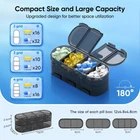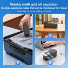 The pill organizer is very easy to fill, and the lid can be opened 180 degrees, making it easier and more efficient to fill and retrieve pills. It has a large capacity to store more pills to meet your weekly needs. The pill organizer is very durable and can be used over 10000 times to open the box. Each individual medicine box can be placed in any of your pockets and bags. Our medicine box uses food grade PP material and does not contain BPA, so you can safely store your daily pills in this daily vitamin organizer! Brand:Set includes:Black Pill Organizer 2PC 【Easy to Carry】Designed for both daily and travel use, this pill organizer is compact and lightweight, allowing you to carry it with ease. Say goodbye to bulky pill bottles and save your bag space! 【Pill Organizer Easy to Use】Our 7-compartment pill box, size: 4.7*1.9*1.9 inches, is the perfect solution for organizing your medication. Each compartment comes with an individual lid, keeping your pills safe and preventing accidental spills. 【Double layer combination,Double sided open lid Design】Our pill box can be divided into 3 compartments and 4 compartments pill box to meet your different needs. The double-layered design of the pill box is half the size of a typical 7-day week pill box, which can easily fit into a small handbag and is convenient to carry. 【High quality Material】Our pill box is made of high-quality food grade PP material, BPA free, you can safely store your daily pills in this daily vitamin organizer! 【Stay Organized】Pill organizer with 7 compartments, you can effortlessly plan and organize your medication for a week or longer. Separate compartments enable you to keep track of different pills, vitamins, or supplements. 【Pill Organizer Durable and Reliable】Both hinges and latches can be opened and closed 10,000 times to ensure durability. The sturdy construction protects your medications from damage and is ideal for travel or daily use.