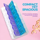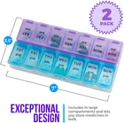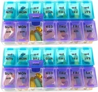 EXCEPTIONAL DESIGN: The pill organizer has a contoured design for easy pill removal. It includes fourteen large compartments and lets you store medicines in bulk. The box comes in bright and attractive colors. VERSATILE: Our pill organizer can be used as a 14 day or 7 day medication planner. With this you need not worry about tracking your consumption. CONVENIENT AND EASY TO USE: This weekly pill reminder comes with push button lids that indicate the day of the week with letter. Its lids are translucent, so you'll know if you have taken your medicine without opening the lid. PACK OF 2 - PERFECT MEDI-PLANNER: The organizer allows you to plan your 7 day medication for both morning and night. It helps you make sure that you haven't missed any dose. VERY DURABLE: Our pill box is made of rugged and durable plastic, . Also, it's lightweight and small, and hence travel-friendly. Most Convenient MEDca brings for you the most convenient weekly pill organizer. It allows you to set your morning and night pills for a week without needing to track manually. If you are in a long term medication then this is a perfect accessory for you. It can be used for 7 day as well as 14 day medication. Optimal Design This pill organizer has everything to make it an optimal choice. It consists of fourteen large compartments with separate push button lids for every compartment. The lids are designed translucent so that you can check your regularity without even opening them. Each lid has the first letter of a week-day with am and pm label. Lightweight and small size makes it perfect for long journey. Attractive, Odorless and Long Lasting Key Features - pack of 2 7 day or 14 day planner - Snap lids - Attractive colors - Week Day and am/pm labeled - Translucent and Durable