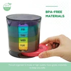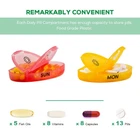 Package Including: 1 Pill Organizer Case Size : 3.8×2.2×4.7 inches Each Compartment Size:3.4×2×0.6 inches Material: Food-grade PP For Whom to Use? - Individuals with memory loss - Elderly people - When under multiple medications - To ensure, patient has taken or not taken medicine Note: As with all medication storage devices, please keep out of reach of children and pet. EXTRAORDINARY WEEKLY PILL ORGANIZER - This unique twice-a-day weekly pill manager is designed to store a large number of pills and vitamins of various sizes and shapes in one place. This makes it easy to manage your weekly medicine prescriptions. REMARKABLE DESIGN - Each container is divided into 2 large-capacity independent compartments that are clearly labeled; morning and evening.So you can take your medicine at the right time,and you don't have to worry about too many pills to fit. EASY TO USE - The top cover is detachable, so you can easily stack trays in sequence. After filling the pill manager, you can ensure that all pills, supplements and medicines will not spill or fall by simply closing the lid. When everything is ready, you can easily slide out of each daily compartment from the bottom. PREMIUM MATERIAL - Made of high quality food grade PP material, this medicine container ensures your safety and environmental protection. COMPACT & PORTABLE - Due to its lightweight and compact shape, it's a perfect dispenser for carrying your supplements and pills while travelling.When stacked, the complete pill manager dispenser is about the size of a soda can without taking up too much space in the bag you carry with you.