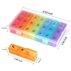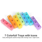 Food grade plastic,separate compartments constructed with durable molded BPA-free materials,is safe for medical use. Case Sizes:8.03 x3.94 x 1.37 inches.Large compartments to provide enough space for all meds,great for store one-week supplement or medication.Daily compartments are divided into morning,noon,night,they are printed with simple icons that represent 3 times per day to remind you take pill on time to accurately manage your health. The pill box is simple yet handy,perfect for a person who needs to take pills different times of the day, also reminder if they skipped a dose, highly recommend to people who take several meds a day at different times. You will love the functionality of being able to take your daily pills with you when you are traveling, working, or on the school! Individually separated pill case,this pill box has 7 removable boxes and each box has 3 separate cubic compartments,smooth surface won't adsorb any residue, which avoids mixing former pills residue to current pills and easy to clean. Sealed buckle protects against moisture and protects pills.No worries about unwanted dumpage of pills found by pets and kids for your slightest unintentional or incidental touch. The lid does not open automatically once it is closed to prevent pills from spilling out. PEACH-STORE THE BEST FOR YOU 🍑 Kindly note 🍑: If you would like to order more quantity than shown is available, you are welcome to place one order for the maximum available quantity and place one more order again because we always have more, than shown in available items.
