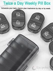 Introducing 7-Day AM/PM Pill Organizer, your ultimate companion for managing daily medication and supplements efficiently. With 14 spacious compartments, this organizer allows you to plan your doses for both day and night effortlessly. EASY & QUICK FILL Simply detach the base to fill all 14 compartments in minutes, ensuring you’re ready for the week ahead. EXTRA SECURE LOCKS Two side locks keep your pills and supplements safe from accidental spills. COMPACT & DURABLE DESIGN The hard and detachable base prevents pills from moving between compartments, keeping them secure and hygienic. MULTI-PURPOSE USAGE Not just for medication! Use it to store small jewelry or personal accessories, making it a versatile addition to your collection. SPECIFICATION Color: Black Material: Top quality BPA-Free & food-grade PP Product Size: 14.5 cm L x 8 cm W x 4.2 cm H Weight: 162 g Each Compartment Size: 6.8 cm L x 4 cm W x 1.8 cm H Make healthy living easier with this stylish and functional pill organizer! 【Extra Large Capacity】This 7-day medication organizer features 14 spacious compartments designed to hold your morning and evening doses for the entire week. With ample space, you can easily sort and track your medications. (Dimensions: 14.5 cm L x 8 cm W x 4.2 cm H; Weight: 162 g) 【Say No to Dumpage】 Keep your pills secure with the reliable sealing mechanism of this organizer. The sturdy lids ensure that your medications stay safely contained, preventing accidental spills in your bag or purse from incidental touches or curious little hands. 【Easy to Open】 Designed with user convenience in mind, this pill organizer features easy-to-remove compartments that allow for hassle-free access to your medications. Perfect for those with limited dexterity, it’s elderly approved and designed to be opened effortlessly. 【BPA-Free & Safe】Made from food-grade PP plastic, this 2 times a day medication organizer is non-toxic and safe for daily use, ensuring that your health and safety are prioritized. 【What You Receive】Purchase includes 1 x 7-Day Weekly Pill Organizer, offering a practical solution for daily medication management. Enjoy peace of mind with its durable design and functional features, making it a must-have for anyone needing to keep their medications organized.