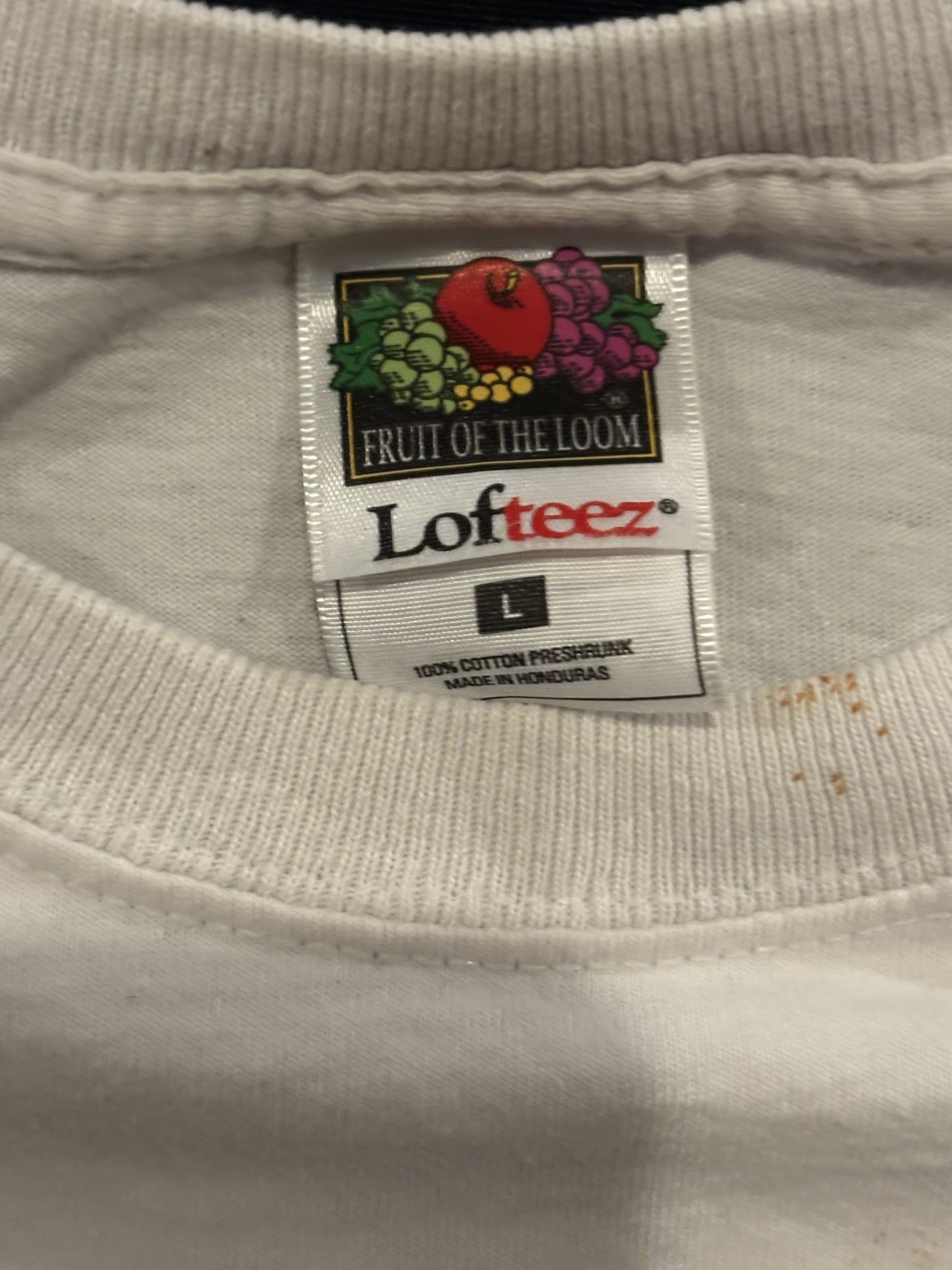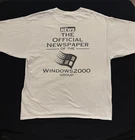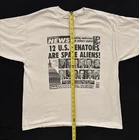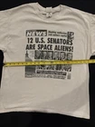 Vintage Style Weekly World News Graphic T-Shirt – Size Large Unique novelty graphic tee featuring a parody front page design from Weekly World News with the headline “12 U.S. Senators Are Space Aliens!” The shirt also features a humorous back print reading “The Official Newspaper of the Windows 2000 Group.” Great quirky piece blending 90s internet culture, conspiracy humor, and retro tech nostalgia. Details • Brand: Fruit of the Loom Lofteez • Size: Large • Color: White • Material: 100% Cotton • Made in Honduras • Double-sided graphic print Measurements (approx.) • Pit to pit: ~21 inches • Length (shoulder to hem): ~27 inches Condition Pre-owned condition. Some small marks/spots visible on the shirt (see photos for details). No major holes or structural damage observed. Graphics remain in good shape. Please review all photos carefully for full condition and measurements. A fun collectible shirt for fans of Weekly World News, conspiracy humor, retro tech culture, or vintage-style graphic tees. Ships quickly and carefully packaged.