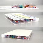 Weekly - 4X a Day XL - Cold Seal Blisters - Tri-Fold Booklet - 6 Pack NO ADDITIONAL EQUIPMENT NEEDED - EASY TO USE! Just fill the blisters with your medications, peel off the backing, fold the flap over, and press with your hands. No additional trays needed and Cold Seal means no heat sealing equipment is needed!! Medication Blister Cards are ideal for anyone who struggles with medication compliance. Care givers and family members appreciate Blister Packs because they can evaluate medication compliance at a glance. Each blister can hold a mixture of medications for complete customization in loading. Cards also have space to write out medication information or instructions. PERFECT FOR CAMPS, SCHOOL, BABYSITTER, CAREGIVERS This is ideal for your children's caregivers - no more worrying if they are given the correct medication at the correct time. You fill it up and the caregiver can easily dispense the correct medications. 6 PACK - That's a 6 week's supply of 4 times a day weekly pill blisters. PLENTY OF ROOM TO WRITE OUT INSTRUCTIONS, NOTES, ADDITIONAL MEDICAL INFORMATION The trifold booklet style cold seal medication blister card has plenty of room to write out instructions, emergency numbers, etc. Use the front cover flap to write out all the information you may need. CARD SIZE: Our Tri-Fold Booklet, Cold Seal, Pill Blister Cards measure 6.5" x 9" x .75" when sealed and 19.75" x 9" x .75" when laying flat before sealing. Individual blister measures 1.06" x .63" x .74"
