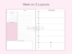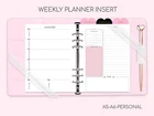 Weekly Planner Insert – A5-A6-Personal Size This beautiful planner insert is designed to fit perfectly into any planner book that uses A6, Pertional or A5 paper . Please note, this listing is for the planner insert only , and does not include the planner cover, pen, or any other accessories . Details : Size : Fits A5,A6, Personal size planners Punching : Comes pre-punched with 6 holes. If you prefer an unpunched version, please let us know when ordering! Weekly Planner Includes : ♥ Personalized Cover Page with your name (210 GSM paper) or ♥ Personalized Cover Page : (random Cover design) Outer: 310gsm paper with a heart-shaped cutout for your name Inner: 100gsm pink paper with your name printed on it ♥ 2025 Calendar ♥ Dated Weekly Plan for 12 months (52 weeks) Total Sheets : 54 sheets + cover page (210 GSM paper) Additional Information : Premium Quality Paper : Printed on high-quality paper that’s thicker and smoother than standard copy paper. It’s silky to the touch and ideal for a luxurious writing experience. Handmade : Each planner insert is carefully handmade, ensuring quality with every order. Shipping : Ships within 2-3 days after payment. International shipments may take 14-30 days to arrive. Return Policy : No returns or exchanges. However, if your item arrives damaged, please contact us. Please Note : This is a planner refill set. Ensure that it matches your planner size before purchasing. this listing is for the planner insert only , and does not include the planner cover, pen, or any other accessories . Thank you for choosing Follow Pink Dream shop! We hope our planner inserts help you stay organized and inspired!