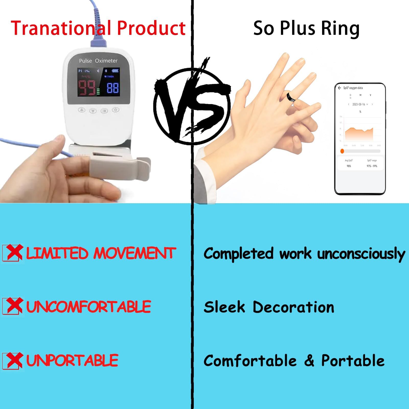 In today's fast-paced world, taking control of our health is more important than ever. Introducing our Smart Ring, a sophisticated wearable technology that transcends traditional fitness trackers, offering a comprehensive monitoring experience. This stylish and trendy smart ring allows you to proactively manage your well-being, from monitoring sleep patterns to tracking heart rate and analyzing biometric data such as blood oxygen levels. Unlike standard smartwatches and fitness trackers, the smart ring provides a holistic view of your health and translates the data into actionable insights. The ring's Pedometer Index calculates daily energy expenditure based on movement, while the Sleep Index offers detailed information on sleep stages. With continuous monitoring of various metrics, users can make informed decisions to improve their health. With its sleek design, long battery life, and high-quality materials, the smart ring is water-resistant, sweat-proof, and comes with a money-back guarantee and warranty. Elevate your health journey with our Smart Ring – the perfect companion for a balanced and active lifestyle. ※ HEALTH TRACKING ON YOUR FINGER —Track your well-being with advanced sensors, analyzing key body signals such as temperature trends, heart rate variability, blood oxygen trends, and sleep quality.Be kinder to your body and take precautions. ※ GREAT GIFT—Ideal present for birthdays, Valentine's Day, Mother's Day, Father's Day, Thanksgiving, Christmas, or New Year. Also perfect for weddings, graduation ceremonies, and housewarming parties.This sleep tracking ring will make your friends and family feel special and appreciated. ※ WEARABLE-FREE EXPERIENCE—The thinnest smart ring in the world, combining elegant design with titanium alloy. Lightweight, fashionable, and comfortable with up to seven days of continuous monitoring on a single charge. Compatible with Android/iOS. ※ BUILD HEALTHY LIFESTYLE—Smart Ring is not just a health monitoring device; it’s a proactive way of life. By recording and analyzing your health data, it motivates you to adopt better lifestyle choices for maintaining health, vitality, and balance. Let health be at the core of your life and let the Smart Ring be your trusted companion! ※ WATERPROOF IPX8 — Water-resistant and sweat-proof with an IPX8 level of protection, ensuring durability in various environments. Feel free to shower or wash hands.