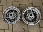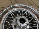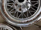 Weld/Cragar Star Wire wheels. There are two in the lot with no major damage. Both wheels have surface rust. They are 15” by 7” 30 spoke with unilug bolt pattern. Sold as is and as shown in the pictures. See pictures for condition and zoom in on the pictures to see the details.