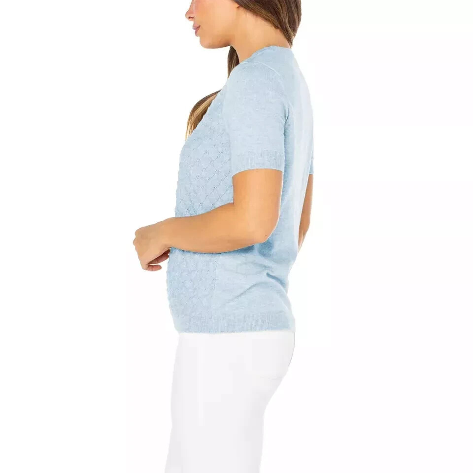 Well Worn Women's Pointelle Short Sleeve Sweater Blouse Size: Medium Color: Blue Content: 50% Viscose / 28% Polyester / 22% Nylon