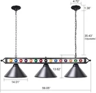 Store New Arrivals Add to Favorite View Feedback Contact Wellmet Pool Table Light,59” Billiard Pool Table Lights for 7' 8' 9' Table,Billiard Lights over Pool Table,Lighting Fixture with Billiard Ball Decor for Man Cave,Game Room,Kitchen Island Description Light Source Type Halogen,Incandescent,LED Item model number CHL-002-light-Black 02 Style Classic Number of Items 1 Power Source Corded Electric Number of Light Sources 3 Control Method App Embellishment Billiard balls Theme Billiards Batteries Included? No Lighting Method Downlight Controller Type Push Button Unit Count 1 Count Room Type game room, billiard room, man cave, kitchen Finish Matte Assembly Required Yes Switch Type Hard wired Brand Wellmet Material Metal Installation Type ceiling Model Name Wellmet Pool Table Light Finish Type Matte Specific Uses For Product General purpose/Indoor use only Included Components Shade included/Chain Included Indoor/Outdoor Usage Indoor Bulb Base E26 Country of Origin China Batteries Required? No Warranty Type manufacturer-and-seller-combination Item Weight 23.8 pounds Light fixture form Chandelier Special Features Dimmable Special Feature Dimmable Part Number CHL-002-light-Black 02 Shade Color Matte Black Mounting Type Monopoint Color Black Is Discontinued By Manufacturer No Wattage 180 watts Shape Cone Voltage 110 Volts Plug Format A- US style Shade Material Metal, Alloy Steel, Ceramic, Iron Fixture Type Non Removable Manufacturer Tochic Product Dimensions 59.05"L x 14.17"W x 13.62"H Size 59 inch-3 Lights ☆ Stylish Design: The 3 Light pool table light feature premium metal that with strong anti-rust and corrosion resistance, colorful billiard ball on the load-bearing. The stylish design revealing the elegance and delicacy ☆ Dimension: Fixture size of L59.05 inch× W14.17 inch × H13.62 inch; Chain length of 35.4 inch (Adjustable), Lamp shade size of D14.01 inch × H7.3 inch, suitable for 7 feet to 8 feet pool table ☆ Brightness: Whether you’re shooting pool in the game room or prepping dinner on the kitchen island, this billiard lamp keeps your favorite spaces looking on the bright side. Note: 3* E26 bulbs not included ☆ Applicable Scene: This pool table light with different scenes can have different effects. Suitable for billiard room, game room, bar, restaurant, cafe, dinning room, bed room etc ☆ Safe and Secure: Hardwired. Assembly required, with mounting hardware and a detailed mounting instructional manual made it is easy to install(NOTE: Full Assembly Required with time and effort) ☆ Note: The billiard balls are only for decoration, They are custom made and a little smaller than normal Product Description Pool table lighting creates a warm atmosphere for your billiard games, whether the table is in your home or a commercial pool hall. Pool players are particular about their lighting, and with good reason. Too many shadows can alter your perception and ruin your shot. But more than just helping your vision and aim, the right light conveys a proper sense of classic billiards room style. Billiard Light for Pool Table Wellmet Pool Table Light This bar pool table light will update your home with its traditional and eye-catching design. Featuring a matte black finish and a multi-colored billiards balls, this fixture will accommodate a variety of decor styles. This lighting fixture uses three 60-Watt, E26 medium-base incandescent or CFL and LED compatible bulbs (not included) and also is dimmable compatible with all standard wall dimmers(not included) for your lighting style. With its easy installation and low upkeep requirements, this Island light will not disappoint. Features: Dimmable(Dimmer switch not included) Pool table lights for 7' 8' 9' table No pull chain,Hardwire Only. Easy to assemble Adjustable 35.4 in. hanging chain to accommodate your home style For energy savings, use three 60-Watt max E26 bulbs (sold seperately) Frame crafted from matte black finished steel, built to last and offers a clean classic look Perfect for your game room, dining room; kitchen island, pool table, bar, restaurant, warehouse etc Dimensions & Weight Size: L59.05 inch× W14.17 inch × H13.62 inch Chain: 35.4 inch (90cm), 31.50 inch(80cm) Chain/Cord Adjustable Ceiling Plate: 4.72 inch(12cm) * 1.38 inch(3.5cm) Lampshade: 14.01 inch(35.6cm) * 7.3 inch(18.54cm) Weight: 28.59lb Multi Shade Bar The billiard light hang from two end chains rather than one center chain, or from rods connected to a long ceiling-mount base, and may thus offer better weight distribution than a single shade fixture. Stylish Design Setting the pool balls in row on the fixture, this combination of balls and lamps makes the the billiard parlor more professional. Adjustable Chain Hang the pool table light too low, you may hit the shade with a cue stick,Too high, and you’ll squint at a cue ball that’s white enough to feel like snow blindness. The chain length is adjustable, and you will achieve the goal -- no shadows, no glare, no headaches. Warm Tips Assembly required. This fixture does need to be hard wired. Professional installation is recommended. Tips for Hanging a Pool Table Light 1. Non-official, just hang your light so the bottom of the fixture is at the height of an average person’s nose. The fixture should also be centered on both the length and width of the table. 2. According to the World Pool-Billiard Association, if a light fixture is non-movable, it should be hung no lower than 65 inches above the bed of the table. If it can be moved—then the light should be hung no lower than 40 inches above the table bed. 3. If you don’t yet have a table but want to install your light ahead of time—the fixture should stand about 60 to 62 inches above the floor. Package Includes 1 x Billiard Pool Pendant light 1 x Instruction manual Some screws and wire nuts for installation Light Information Category: Pool Table Light / Island Light / Pendant Light Usage: Billiard / Pool Table / Kitchen / Dining Room Shade Shape: