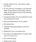 The Werner 5 in 1 Multi Position Pro 14 ft. Reach Aluminum Adjustable Ladder is a versatile and durable tool designed for various tasks. Made of aluminum and steel, this ladder has a maximum weight capacity of 375 lbs and a load capacity of 375 lbs. With a telescoping and foldable design, it is easy to store and transport. The ladder features a multi-position design with 12 steps, providing a maximum reach height of 14 ft. This Werner ladder is a reliable and efficient option for home and workshop use.