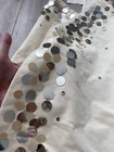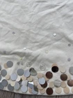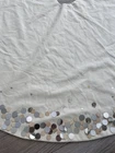 Very soft tree skirt with sparkle beading and sequins. Has hook closures on back and small stain on back not visible from front. Comes with extra sequins pouch Add a touch of elegance to your Christmas tree with this West Elm Tree Skirt. The silver champagne sequins and beads provide a glamorous look that will complement any holiday decor. Measuring 50 inches in diameter, this circular tree skirt is designed to fit most standard Christmas trees. It is perfect for those who want to add a festive touch to their home without sacrificing style. The West Elm Tree Skirt is a must-have accessory for any Christmas enthusiast. It is made of high-quality materials and is designed to last for several holiday seasons. Whether you are looking to create a stunning Christmas display or simply want to add some sparkle to your home, this tree skirt is the perfect choice.
