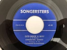 artist The Songsters Quartet label Songsters 50 title God Made A Way / I See Jesus record condition VG++ notes King custom pressing with nice guitar work. Grading scale: NM / VG++ / VG+ / VG / VG- / G+ / Poor I combine S&H on multiple orders and have no problem starting a stack if you wish to combine S&H for future orders. Please view my other listings for more desirable 45's, 78's and LP's in the country, bluegrass, gospel, rockabilly, rock & roll, teen, instrumental genres. Powered by e C o m m e r c e Player .com