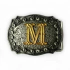 Western Belt Buckle for Men Cowboy Rodeo Vintage Style Wear Alphabet Letter M